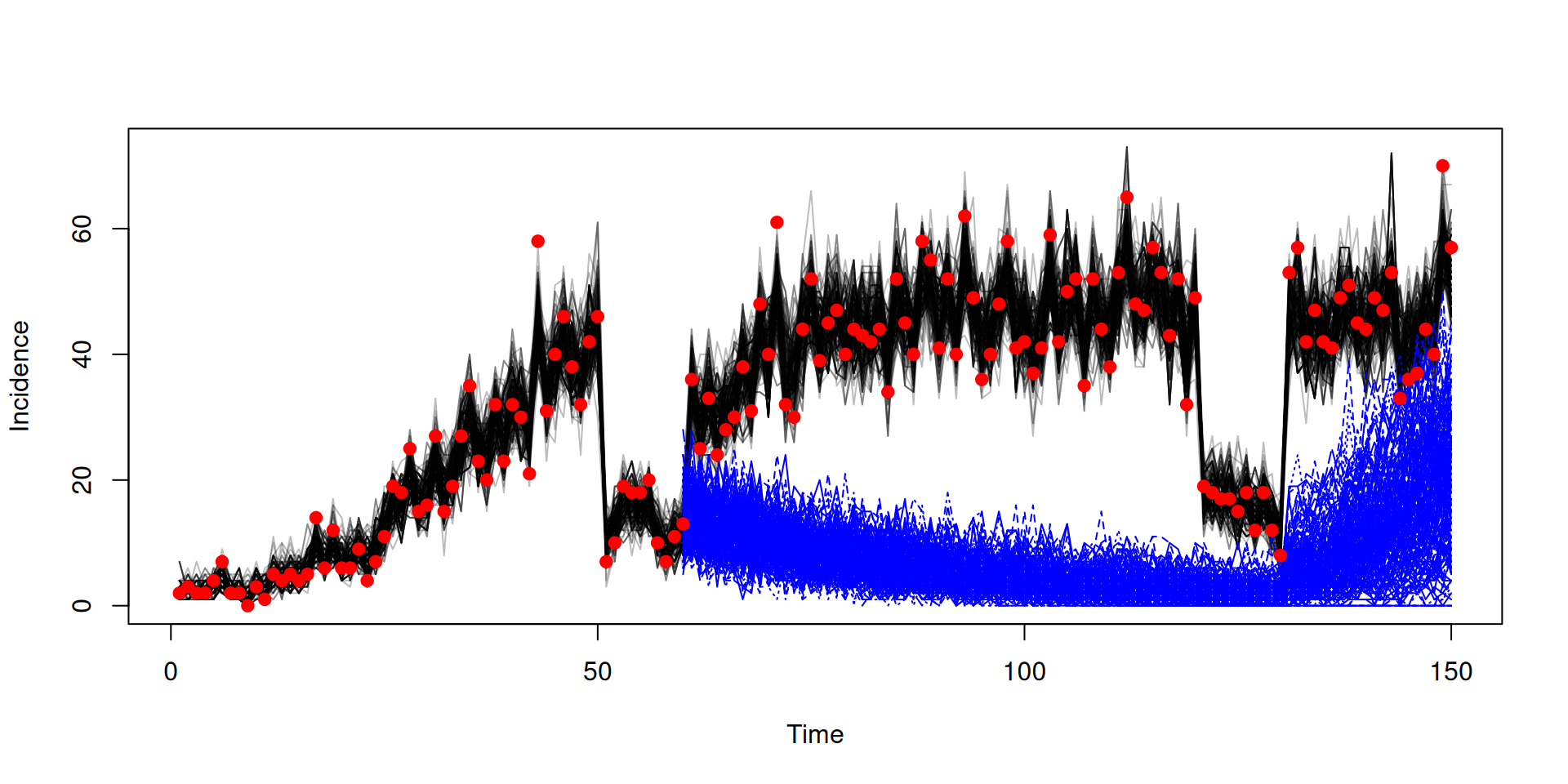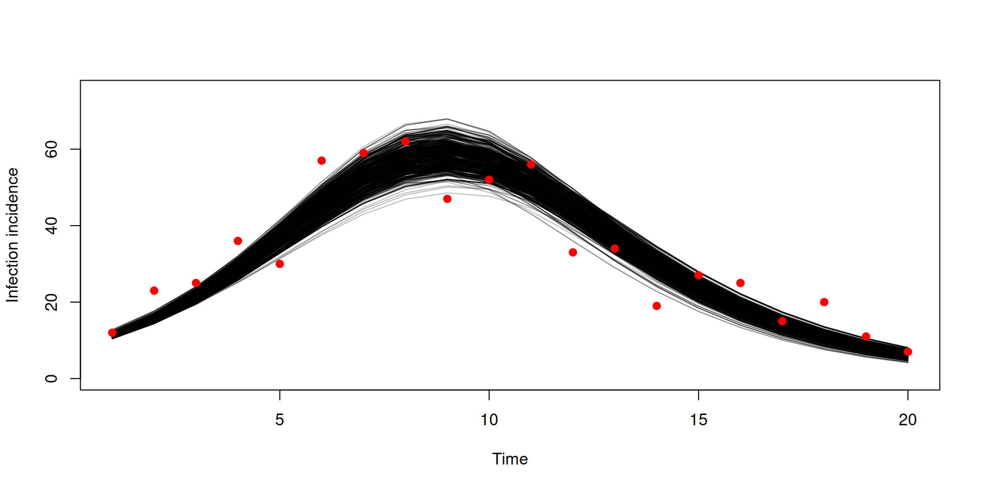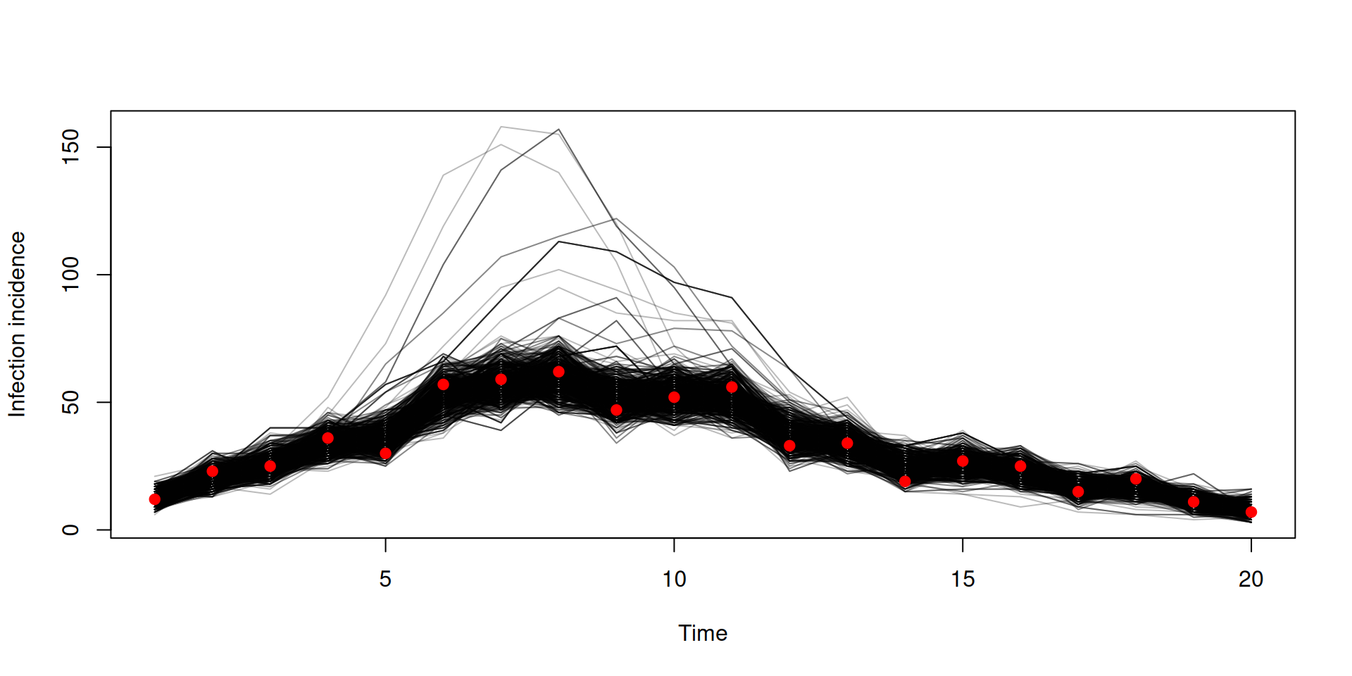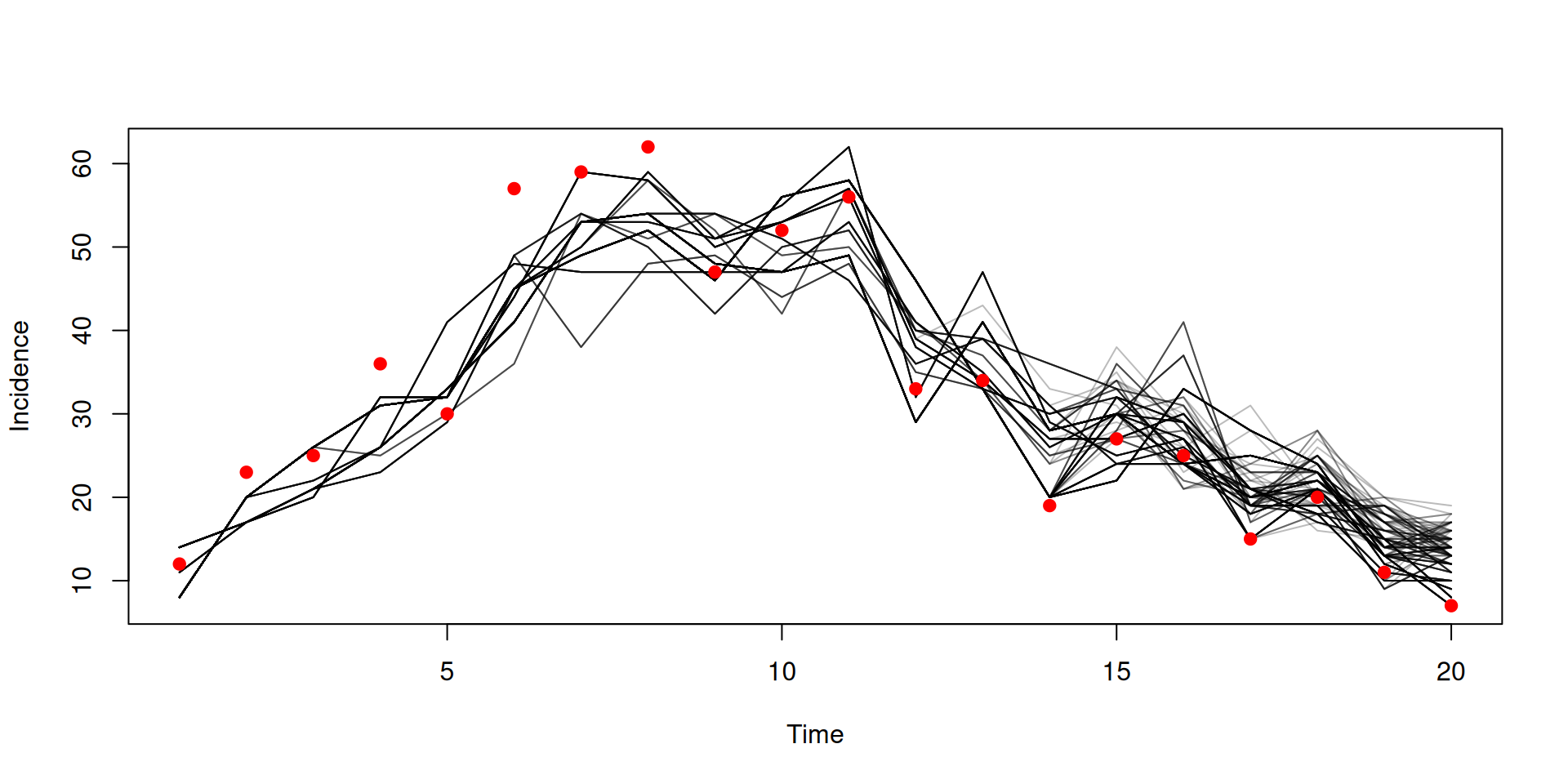 matplot(data$time, t(y$incidence), type = "l", col = "#00000044", lty = 1,