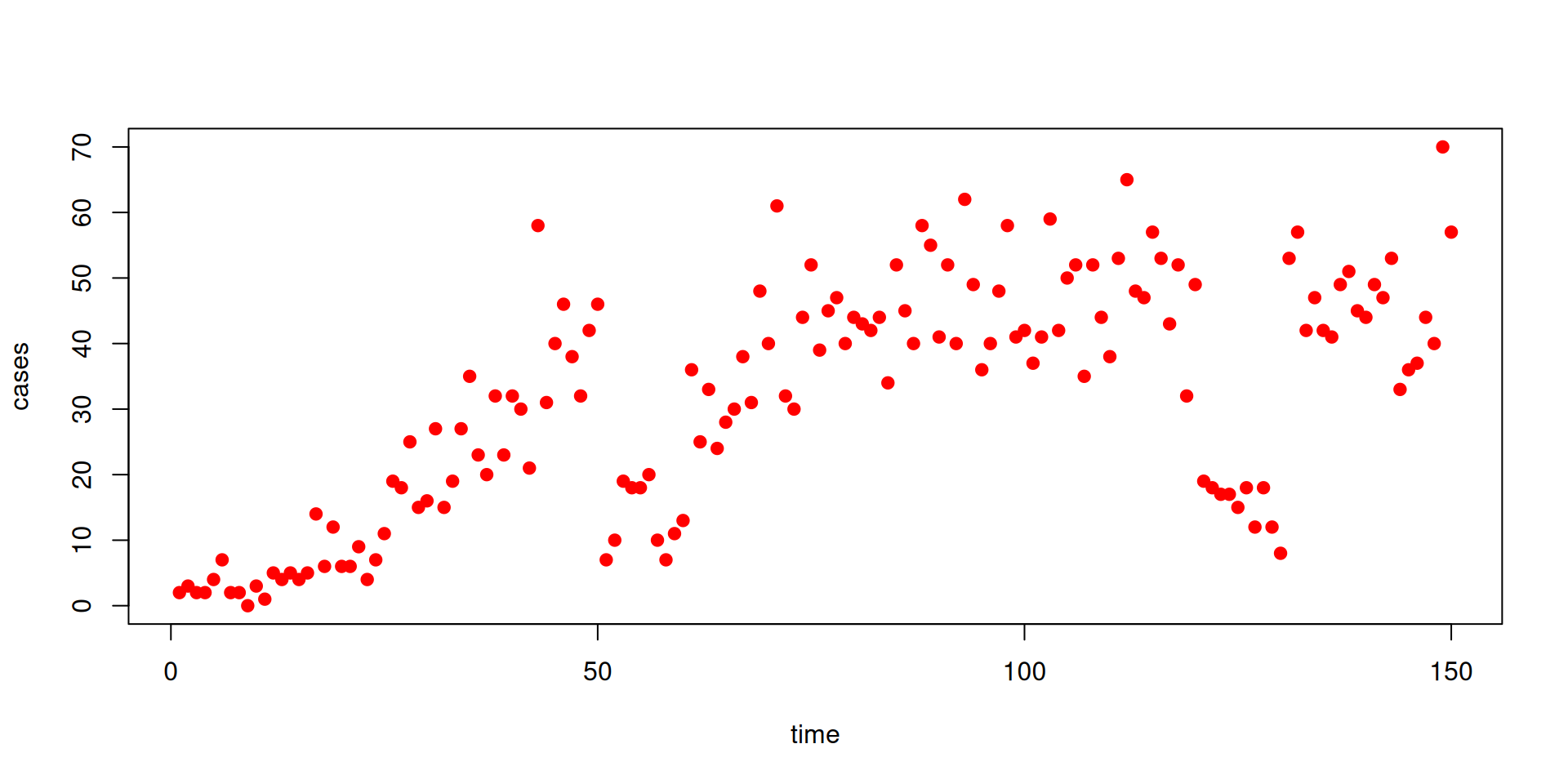})We will link cases in the data to incidence in the model, and we will treat beta and gamma as unknown parameters to be estimated