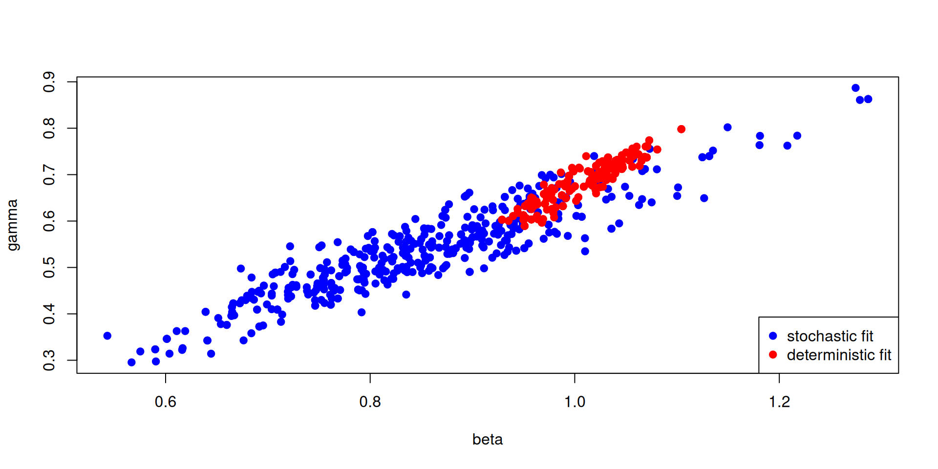 legend("bottomright", c("stochastic fit", "deterministic fit"), pch = c(19, 19),