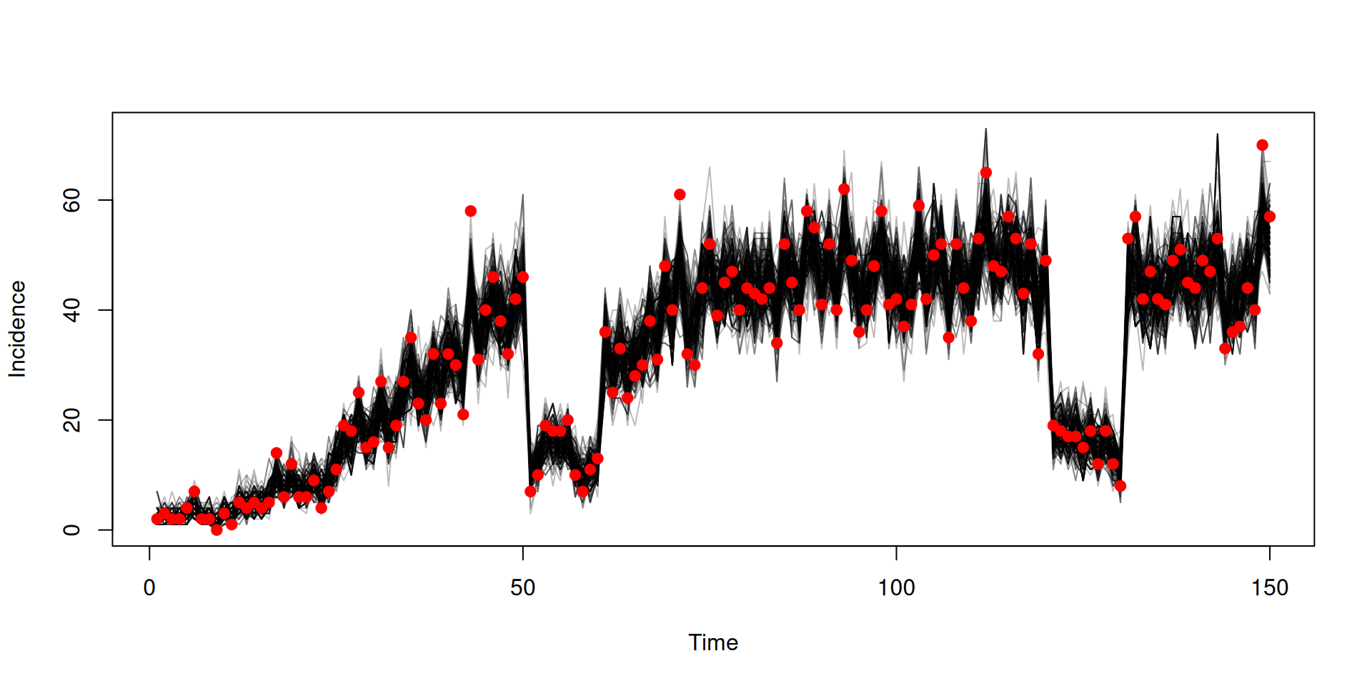xlab = "Time", ylab = "Infection incidence", ylim = c(0, 75))